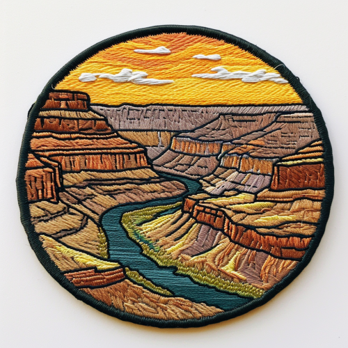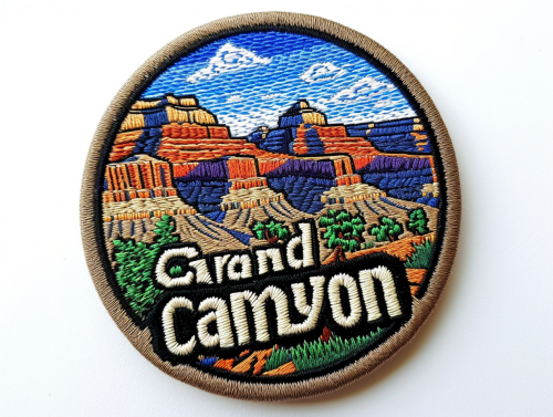 embroidered national park patch of grand canyon on a white background, with the words "Grand Canyon". --ar 4:3 --v 6.0