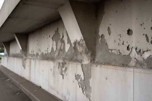 a flat, smooth fragment of reinforced concrete flying in the air, frontal view, white background, studio photograph --style raw