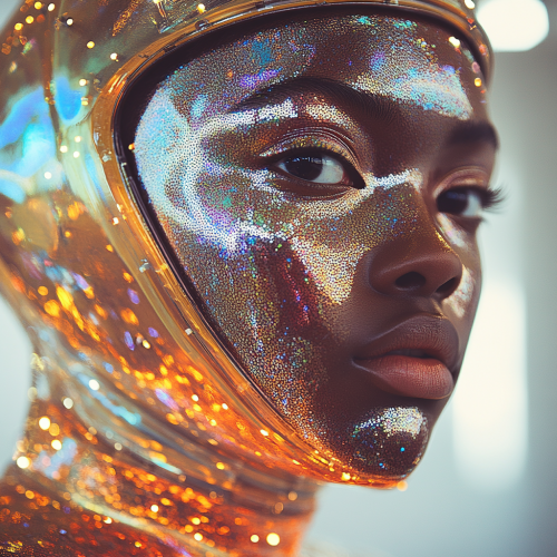 a close up of a person in a space suit, creative fashion, ffffound, he has boots, artpop, garish, whitespace, futuristic ambiance, fluorescent led, many holes, afrofuturist, spears, futurist --s 750