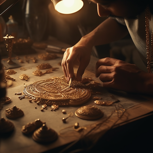 cinematic shot depicting craftsmanship, jewellery craftsmanship, — ar 1:1