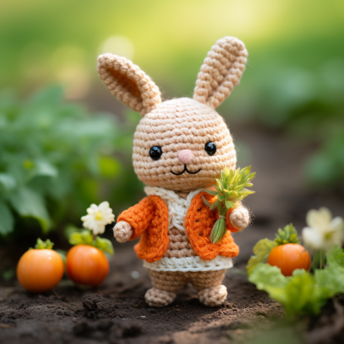 Bunny holding carrot in flat cartoon style illustration.