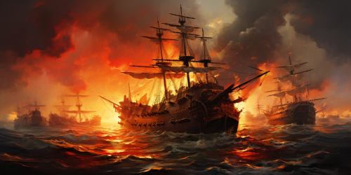Battle of Focchies, nine warships burnt, three galleasses burnt, two galleys burnt,by Aivazovsky --ar 6:3