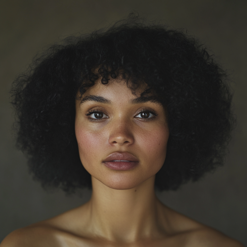 A lifelike photograph of a 28-year-old woman with black hair, medium build, visible from her head down to her hips, facing the camera. The woman has African features, with deep brown skin, curly black hair, and a confident expression. The photo features soft natural light, detailed skin texture, and visible upper torso, waist, and hips, Nikon Z7, 50mm lens, f/2.0 aperture --style raw