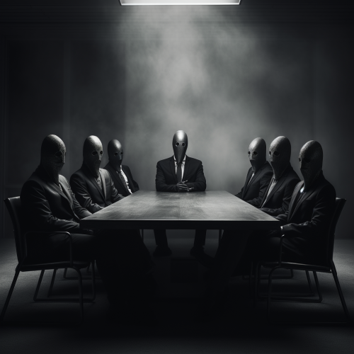 very exclusive board room meeting, cryptocurrency theme --ar 16:9 --s 750 --v 6.0