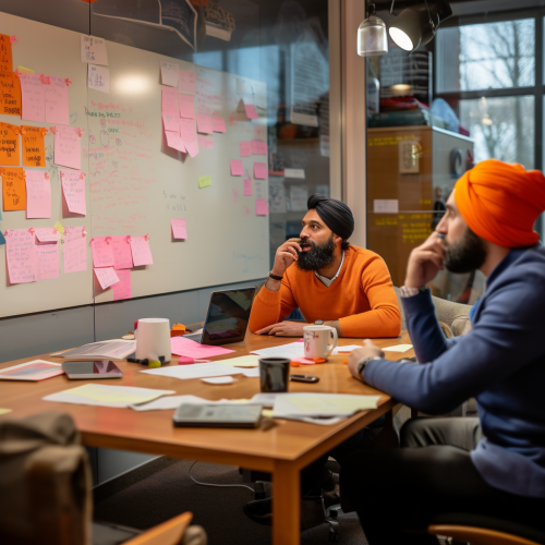 Two people discussing business ideas
