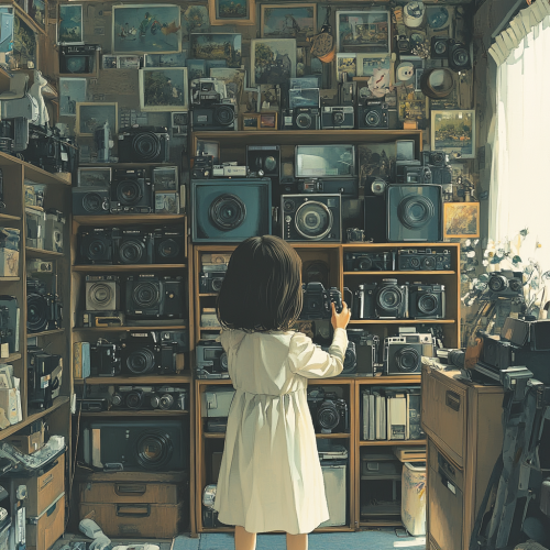 Generate an illustration of a journalist with leica camera and press documenting a war zone. The presentation should be minimal, colourful, and the one which New York Times would usually publish in their magazine. --v 6.0 --ar 5:4