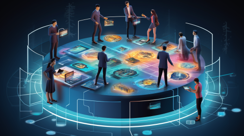 presenting to a client their ai app as consultants on a large computer screen, drawing sketch