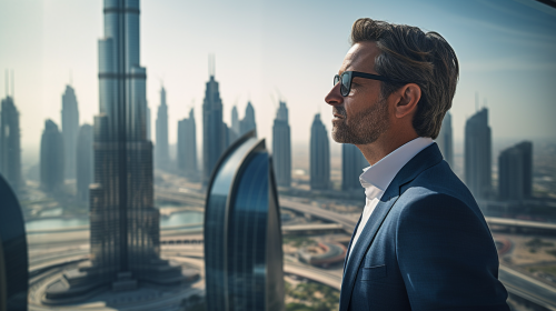 Close-up of businessman walking in Dubai