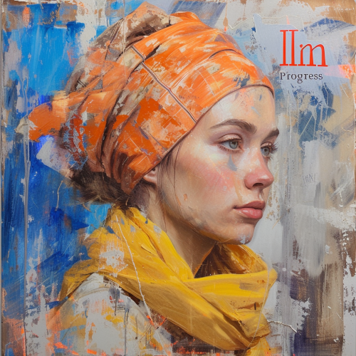 the words "In Progress" written in the middle of a beautiful portrait, oil on canvas --v 6.0