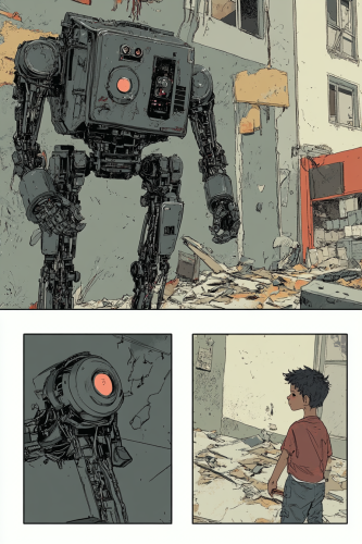 " ship of theseus, Design a children's book cover featuring a 12-year-old boy and a friendly white robot in a futuristic outdoor tech plaza. The boy holds a tablet, smiling, and the robot stands next to him, slightly shorter, with expressive blue LED eyes and a glowing smile. The robot has a transparent dome head, colorful wires visible inside, and wears a white lab coat with a red bow tie and yellow utility belt. The scene is bright and playful, with futuristic gadgets like a hovering drone car and floating devices around them. Keep the background simple but detailed, with modern city buildings in the distance. Ensure the top third of the image has a solid vibrant blue (#87CEEB) transitioning into a light fade toward the characters to leave space for the title, "AI Cool." Use inviting, happy colors like bright yellow (#FFD700), sky blue (#87CEFA), and pastel green to create a friendly and engaging vibe for kids aged 9-12. Make the design playful, with a 2D, cartoon-like illustration style." --ar 2:3 --style raw --stylize 50 --v 6.1