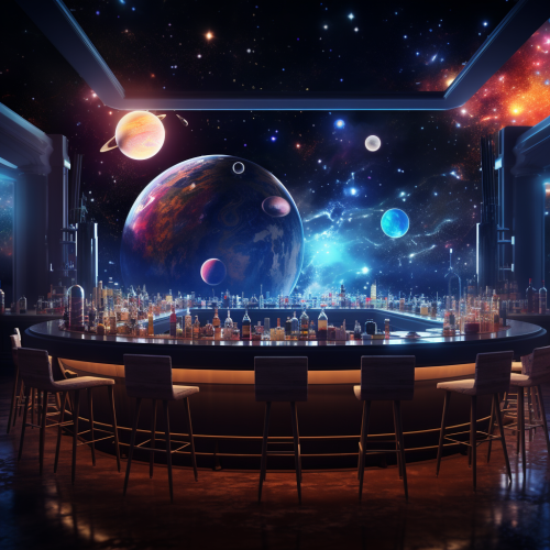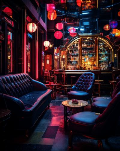 female cyborg bartender in a futuristic 1920s bar --v 5.0 --s 750
