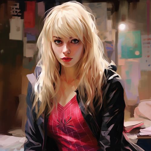 Full-body Gwen Stacy unmasked, standing on a rainy rooftop in her Spider-Gwen suit. Her face shows calm determination as rain falls around her, and her suit glistens under the neon lights of the city. The background features a glowing, rain-soaked cityscape, with drops of water bouncing off her suit. Cinematic lighting, dramatic mood, photorealistic details, hd quality --ar 16:9 --v 6.0 --s 50 --style raw