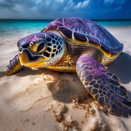 A turtle with a steel-like hard shell, reflecting light as if made of metal, showing its incredible strength and durability, underwater scene, with the shell gleaming and impenetrable --ar 3:4 --v 6.1