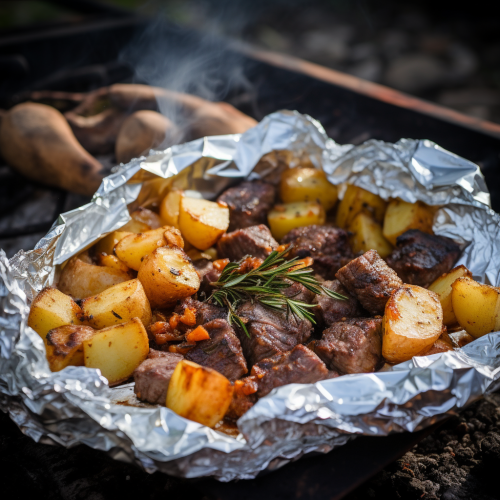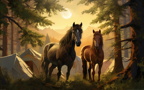 A family of four (two adults and two children) camping in a lush forest clearing. They are gathered around a campfire, roasting marshmallows, with a tent pitched nearby. The backdrop showcases tall pine trees and a clear starry night sky. Medium: Photography. Style: Hyper-realistic with a touch of nostalgia reminiscent of classic family camping trips. Lighting: Soft ambient light from the campfire casting gentle shadows, with a hint of moonlight filtering through the trees. Colors: Warm earthy tones with pops of vibrant colors from the camping gear. Composition: Nikon D850 DSLR camera, AF-S NIKKOR 24-70mm f/2.8E ED VR lens, Resolution 45.7 megapixels, ISO sensitivity: 640, Shutter speed 1/60 second, f/4, depth-of-field showcasing the family in sharp focus with a slightly blurred background. --ar 16:9 --v 5.1 --style raw --s 750