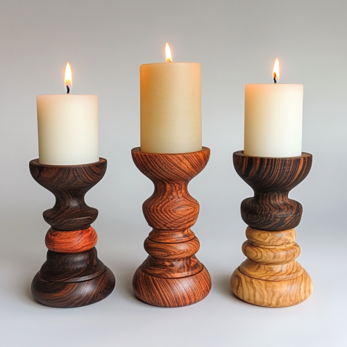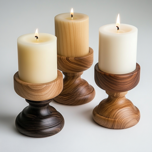 make a pillar holder, in three different different wood combinations, use three different different wood in a single candle pillar holder, on white background.