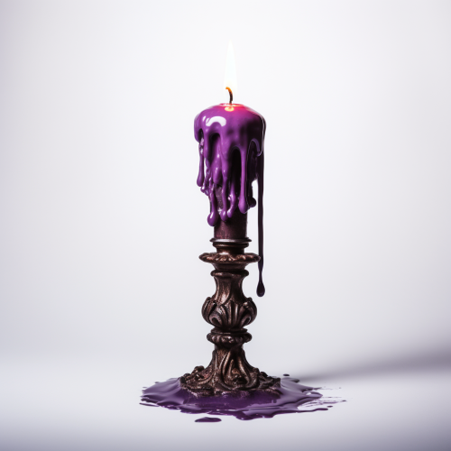 !imagine a woman with pale grey skin. Her skin is made of dripping candle wax and she has a lit flame on top of her head. She is wearing flowing robes with metallic silver adornments. She is standing at the edge of a cliff at night time, and she is staring up at the moon with an orb of magical essence in her outstretched hand