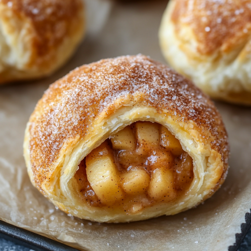 Apple Pie Bombs are round, doughy pastries filled with a sweet, spiced apple filling and coated in cinnamon sugar. The golden-brown exterior is crisp and flaky, while the inside reveals tender apple pieces, likely cooked with sugar and cinnamon to create a warm, gooey center. Rolled in a generous mix of cinnamon and sugar after baking or frying, they offer a delightful contrast between the sugary, crispy outside and the soft, sweet filling, reminiscent of mini apple pies. Best enjoyed warm, these treats are perfect for dessert or a comforting snack,photo tken by iphone 15 pro,--ar 1:1