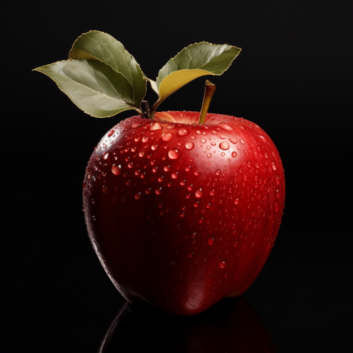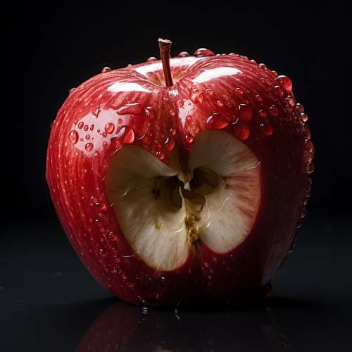 ultra realistic photo of a Champion apple on a black background with black glossy flor