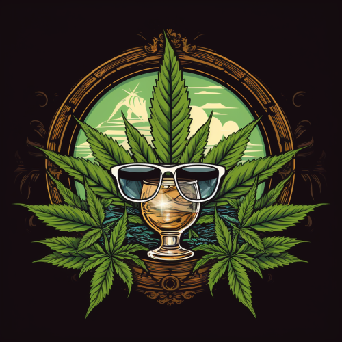 logo with binoculars, cannabis leaf relfections in the glass --s 250