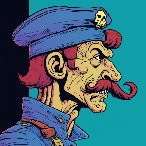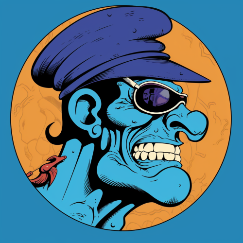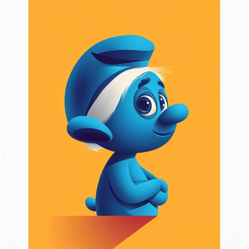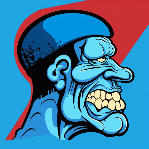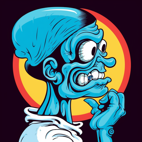 Blue baby smurf art by Ed Roth and Basil Wolverton, nft profile picture, character posing, side view of head, half body, flat vector art, flat illustration, minimalist, vibrant colors, colored background, rule of thirds, centered, good composition:: text, watermarks::-0.5 --v 5.0