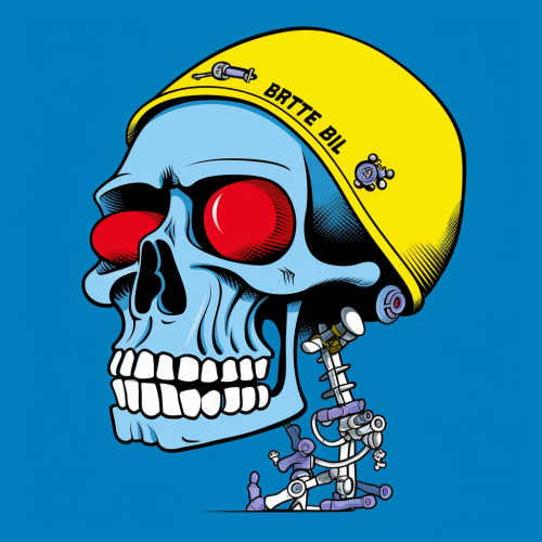 Blue smurf robot art by Ed Roth and Basil Wolverton, nft profile picture, character posing, side view of head, half body, flat vector art, flat illustration, minimalist, vibrant colors, colored background, rule of thirds, centered, good composition:: text, watermarks::-0.5 --v 5.0