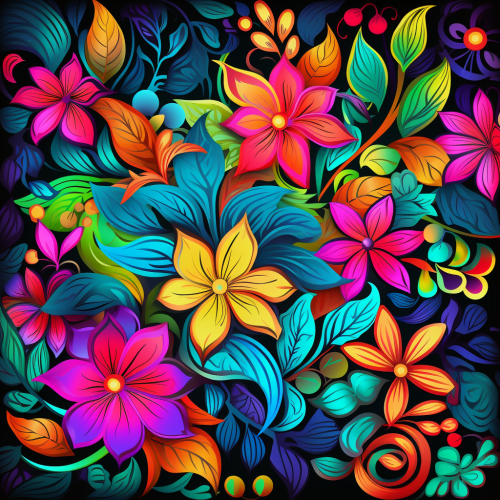 A multi-hued vibrant colorful floral pattern pattern in vector art style for shirt prints, vector art, digital art, shirt print