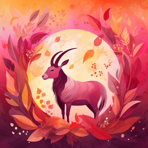 Capricorn zodiac sign background autumn leaves aurora borealis red pink yellow --v 5.0