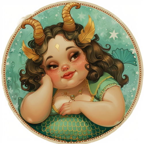 dark skinned woman zodaic sign Capricorn in the style of a traditional tattoo in a cirkel with blue and orange colors and a white background