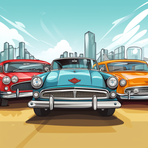 cartoon style several car models 4k resolution vector graphics art sticker design