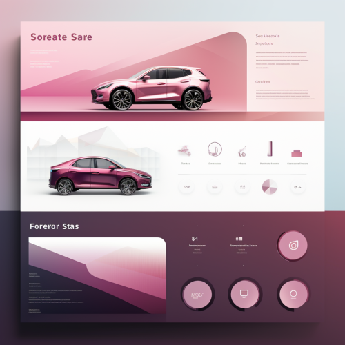 A car sales presentation slide with data vis graphics in the style of skeumorphic design, minimalism, Braun aesthetic