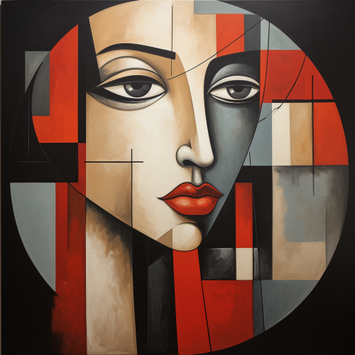 a painting fijian woman who is looking over her face, in the style of modern cubism, emotional expressions, red and beige, somber mood, contemporary indian art, punctured canvases, high resolution --s 750 --style raw