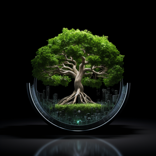 Carbon capture and storage ,watercolor,wild pencil , drawing, black inked, on white paper, colorless, caricature, comic , green,ecological,smart,trees,style by Manfred Deix