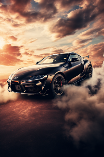 Toyota supra MK4 front side view, Custom widebody, RED metallic, black wheels, JDM style decals on a wet street in downtown Tokyo at night,Background is nicly lens blur and perfect color balance --ar 9:16 --v 6.0