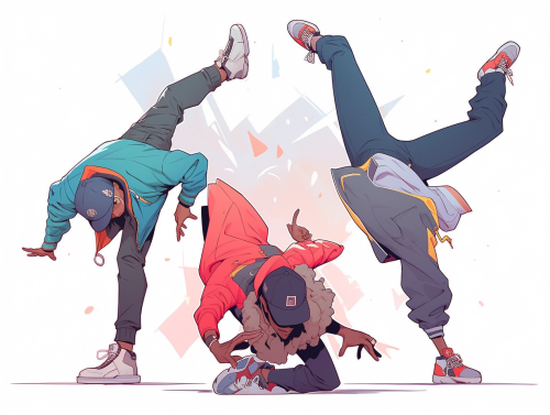 cool kids doing breakdance , hip hop character --ar 4:3 --niji 5