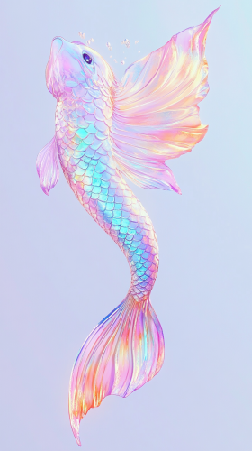 iridescent pastel mermaid tail, simple background, cute cartoon style, digital art, pastels, white space around the subject, pastel colors, pastel scales, pastel --ar 14:25