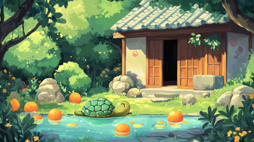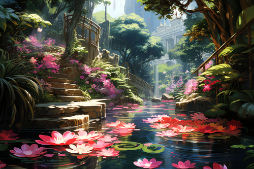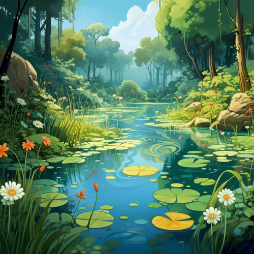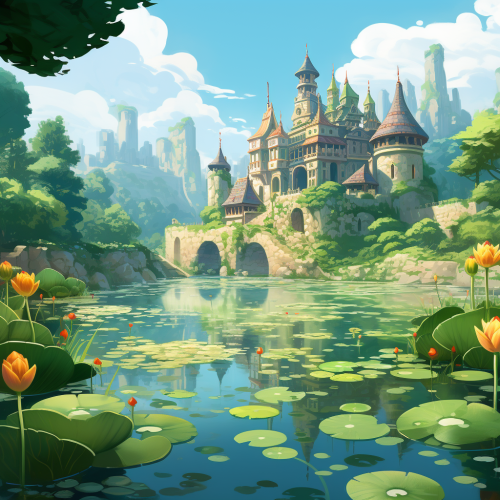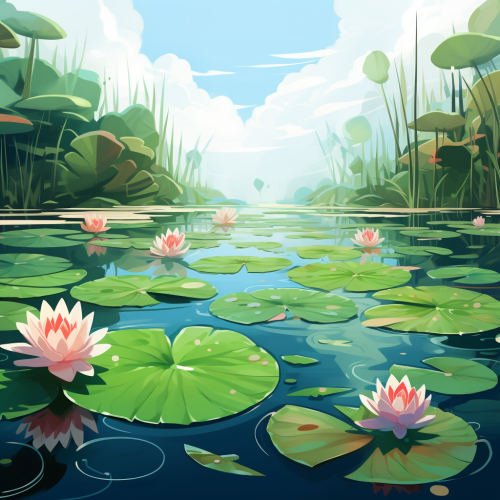 cartoon, backgrounds, pond, a lotus leaf, kingdom, clean