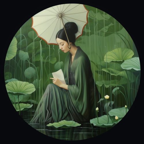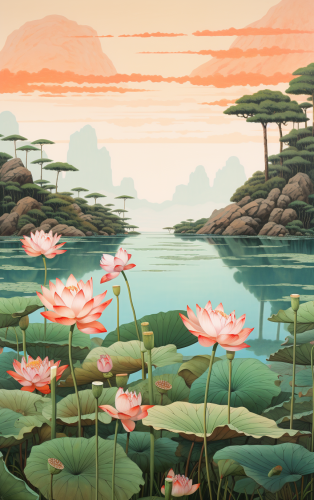 lotus pond:: Hokusai, minimalist art, zen --ar 5:8 --v 5.2 --no person, woman, man