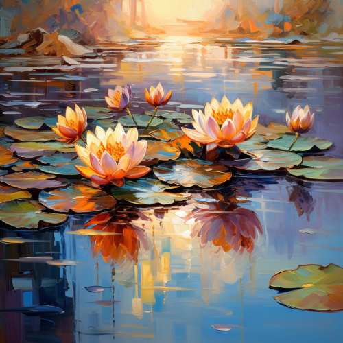 Oil painting, lotus in pond, Monet style, --seed 500 --s 400 --c 50 --ar 3:2 --v 5.2