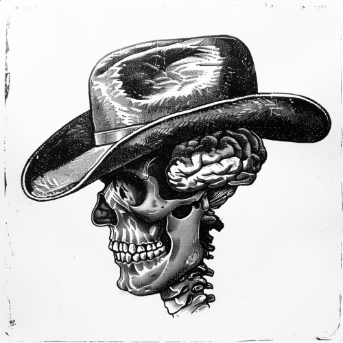 black and white cartoon of a brain, side profile, sketch on paper, funny and silly