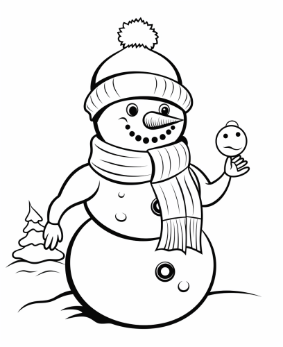 coloring book for kids, snowman, white background, cartoon style, no shading, low detail, black and white --ar 9:11