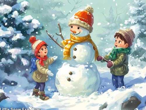 christmas coloring book with colours, snowman, children playing, cartoon, ar-- 2:1