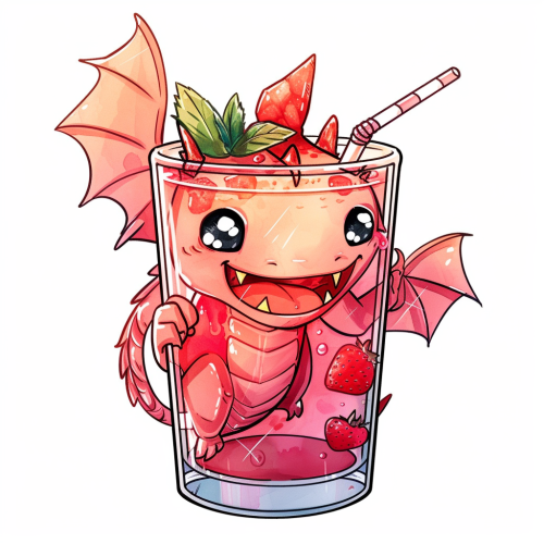 [ gimlet cocktail as a dragon ] in the style of lovecore, cute cartoonish designs, I can't believe how cute this is, sparklecore, kawaii, white background --v 6.0