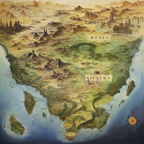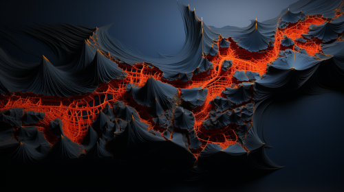 A beautiful landscap, cartoon style, composed of 3 parts, the first part is a big grassland with green gradients, the second is a lake with blue gradients and the last one is a volcano with red gradients --ar 4:3