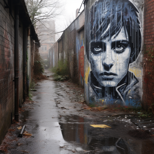 a suspected graffiti artist in an alley in the outskirts of east berlin. may be next to east berlin mainstation.