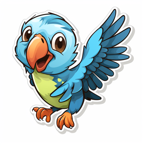 cute flying parrot Sticker, Sticker, pixar Art, cartoon, Vector, White Background, Detailed--16:9