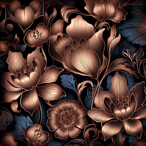 seamless pattern, dark, floral print with rose gold intricate pattern, vector art, fabric pattern, gothic