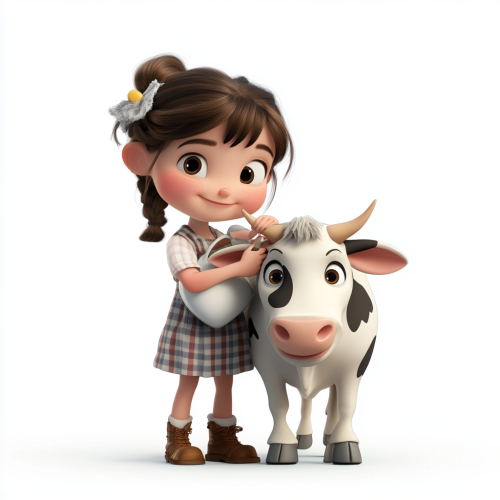 Cartoon girl with glasses, ponytail, drinking milk tea.