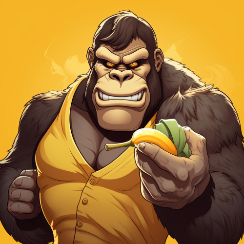 an illustration of a skewed cartoon gorilla in an experimental business branding style, flat, expressive, geometric, tech, cryptocurrency
