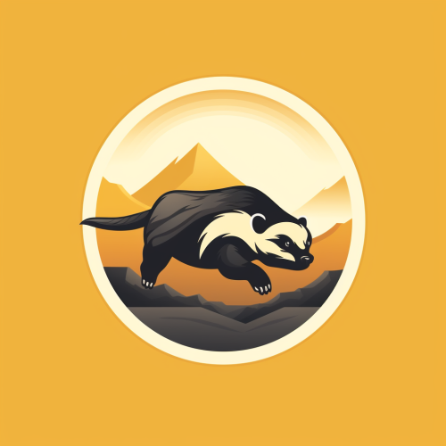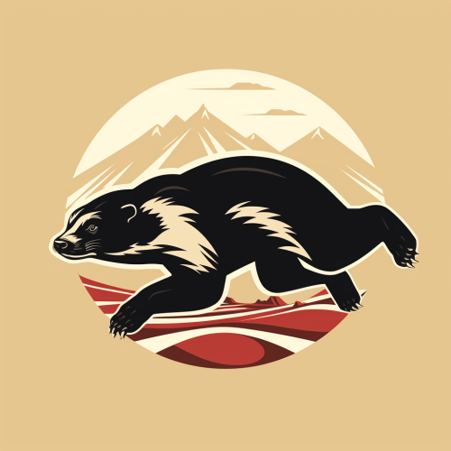 honey badger running on 4 minimalistic logo, well rounded, motivational, beast, strong