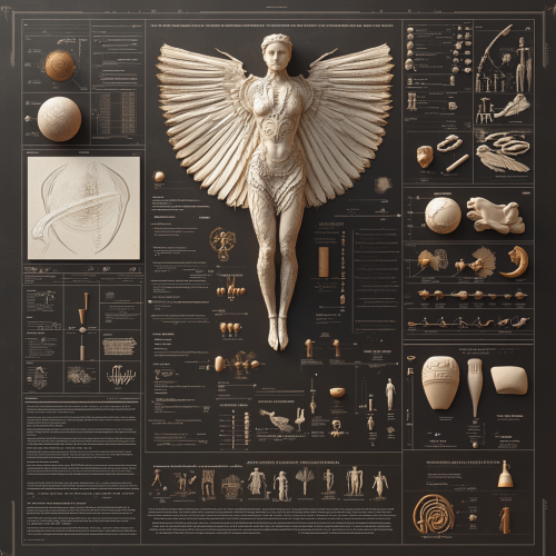 Creative infographic of art in prehistoric age. The page is filled with one main object and around it there are multiple panels that showcase detailed line work of different artists and cultures, scales, and other intricate details. Aesthetic combines classical serenity with dynamic data chaos, illustrating tradition meeting innovation. Contrast, richness in detail. 3D render, octane, cinema4d --v 6.1 --style raw